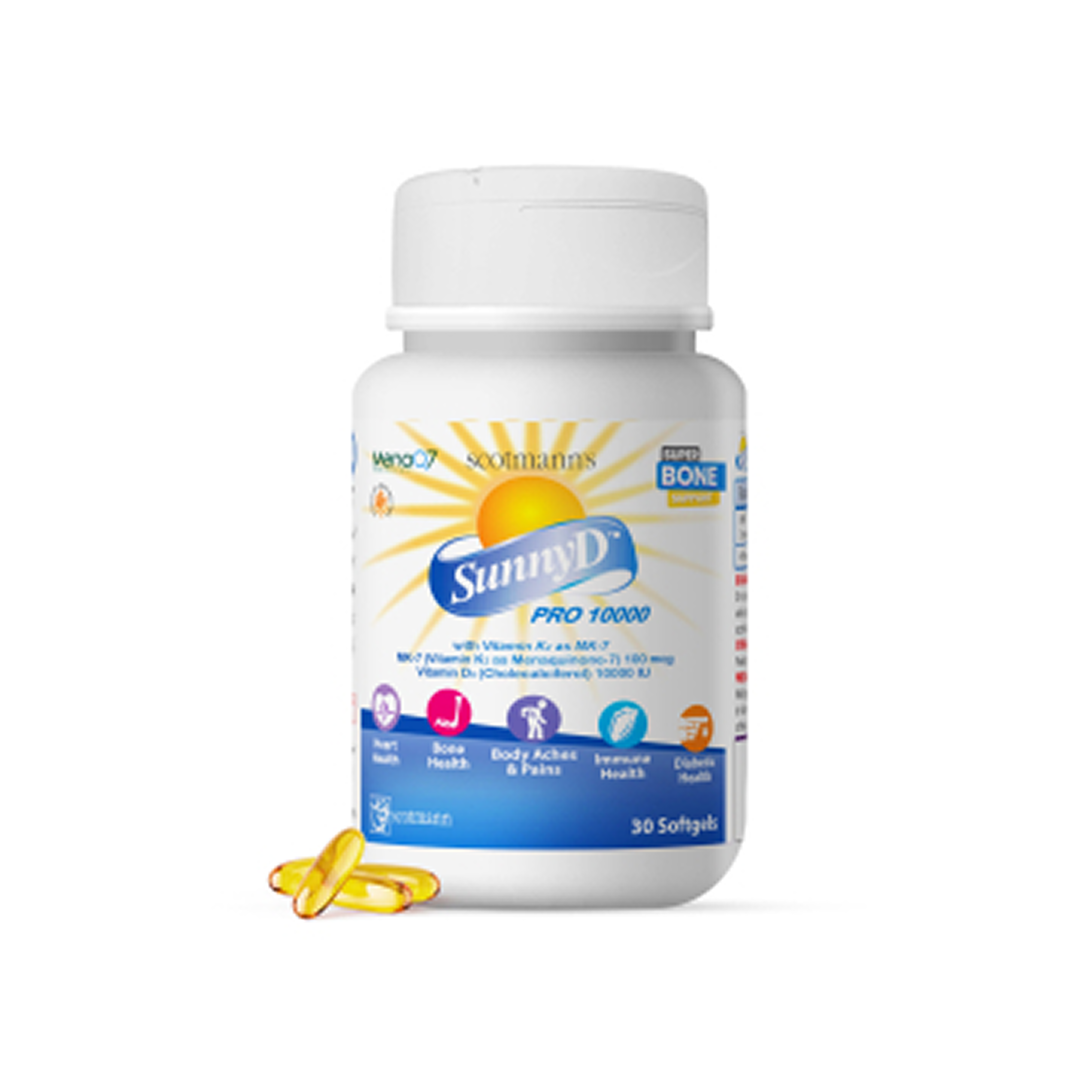 SunnyD Pro 10000 delivers a high-potency combination of Vitamin D₃ (10,000 IU) and MenaQ7® Vitamin K₂ (100 mcg). Vitamin D₃ helps support calcium absorption, while MenaQ7®, the most clinically studied form of K₂, contributes to healthy bone mineralization and bone strength. Together, they help maintain bone health and support overall wellness.