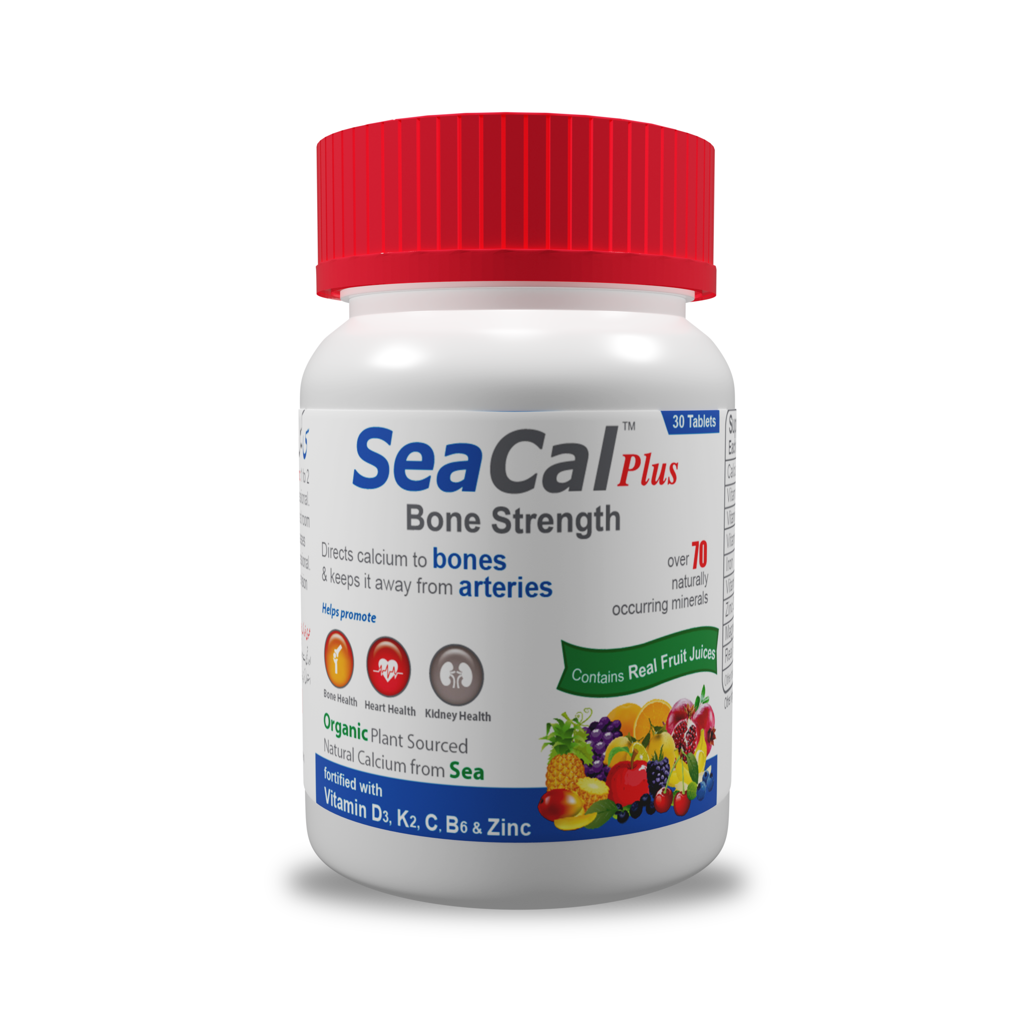Seacal Plus combines calcium from red algae with vitamin D3, K2, vitamin C, magnesium, zinc, iron, and fruit juice blend antioxidants to help maintain bone density, immune resilience, and overall mineral balance, ideal for adults seeking natural skeletal support.