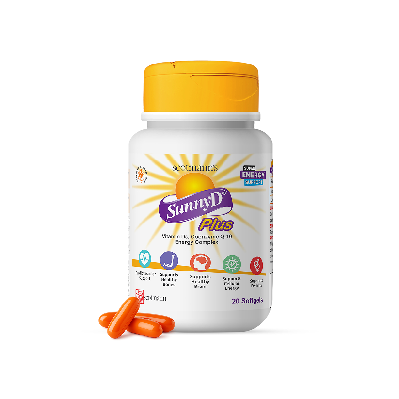 SunnyD Plus combines Vitamin D₃ and Coenzyme Q-10 to support bone and muscle strength, maintain immune balance, and enhance daily energy by promoting efficient cellular energy production—helping you stay active and energized in everyday life.